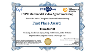 Our paper "SiLVR: A Simple Language-based Video Reasoning Framework" won the first place award at Multi-Discipline Lecture Understanding at CVPR 2025 Multimodal Video Agent Workshop. Congrats, Ce and Yan-Bo!